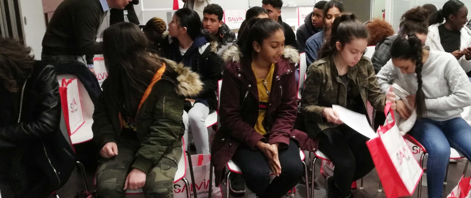 À cette occasion, Salvia Développement a accueilli une classe de 3e du collège Henri Wallon d’Aubervilliers. Cette matinée a permis aux élèves de découvrir les métiers du numérique chez Salvia Développement, notamment à travers les témoignages de collaborateurs issus de l’apprentissage puis en participant à des ateliers de codage et algorithme.